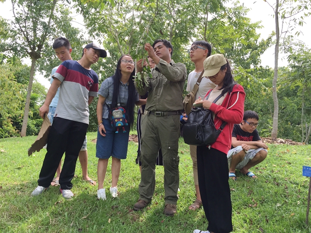 课程以实践为主,以老师与学员互动的培训形式,加深学员对所学知识的认识与理解。园林植物病虫害防治授课老师肖云学讲授的主要是园林植物病虫害等有害生物的基础知识、植物病虫害的发生规律和病虫害防治原理与技术。他反复带领学员到各园区观察识别各类病虫害,现场讲授植物受危害部位和防治要点,然后让学员分组到园区识别病虫害,最终以小组PPT的形式汇报所观察到的病虫害、受害植物种类、受害部位、表现症状和防治要点。学员们的相互学习交流也使他们更好地掌握了园林植物病虫害防治知识。花卉应用与园林艺术授课老师黄天萍围绕中西方园林史、园林特点、园林相关定义及植物配置方式运用方面展开课程的讲授,并带领学员到各园区进行实地讲解,具体分析各园区植物配置特点,将学员分成7个组并对7个植物专类园区进行实践评价分析,让他们通过绘制专类园的平面图和功能分区图,用园林专业术语对园区的各园林要素进行评价,展现值得借鉴推广之处,同时指出不足并提出改善建议。学员们积极完成实践课程后由老师进行点评。观赏植物授课老师吴姗以观赏棕榈、荫生、水生、蕨类等观赏植物为分类单元,用活植物材料给学员讲授观赏植物的识别特点、分类、园林运用等,最后以竞赛的形式让学员进一步巩固所学内容并给予奖励。花卉生产与栽培授课老师杨婷婷、吴福川将园区栽培的植物与苗圃繁育基地相结合,不仅让学员了解花卉的分类、花卉栽培设施、设备等,还让学员亲自己动手操作植物扦插、嫁接、修剪、施肥、管理等繁育技术。苗圃学授课老师邓继武、刀祥生以版纳植物园苗圃为授课场所,给学员们讲授了苗圃地选择、规划、基本条件及要点、基本设施以及现代苗圃的发展等,在实践过程中以团花、阳桃等种子为例,让学员掌握种子的采集、加工、处理过程及大、中、小粒种子的播种方式等。为了让学员了解有关园林机械知识,课程专门增设了园林机械基本性能与操作技术的实践课程。