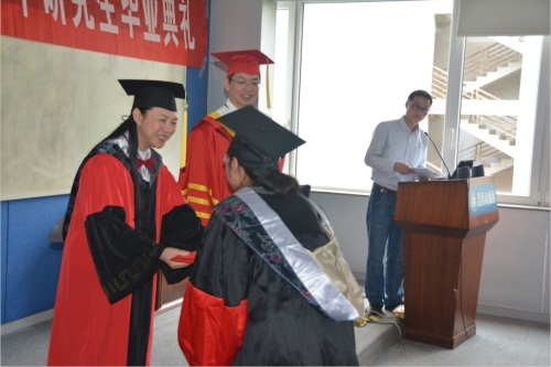 随后,进入毕业证书授予仪式,昆明动物所党委书记沈华为毕业生们逐一颁发毕业证书,姚永刚为毕业生们逐一扶正流苏,期间一声询问、一句问候充分表达了两位老师对毕业生的关心和爱护。