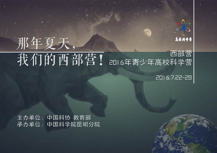 【西部营】2016年7月22-28日,由中国科协、教育部主办,中国科学院昆明分院承办的西部营,将带领来自广西、贵州、云南的优秀高中生及带队老师,围绕学科特色和区域特点,开展6个探究性科研实践课程和4个特色科普教育活动。