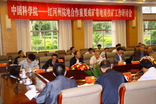 2011年5月5日,“中国科学院—红河州院地合作重要成矿带地质找矿工作研讨会”在蒙自市红河会堂召开。刘光鼎、姚振兴、叶大年、朱日祥等四位中科院院士,中科院昆明分院、中科院地质与地球物理所、中科院地球化学所、中科院广州地球化学所等单位的多位学者、专家,云南省国土资源厅、云南省地质调查局的相关领导,以及红河州政府的分管领导、相关部门领导出席会议。中科院昆明分院王庆礼院长应邀出席会议并发言。