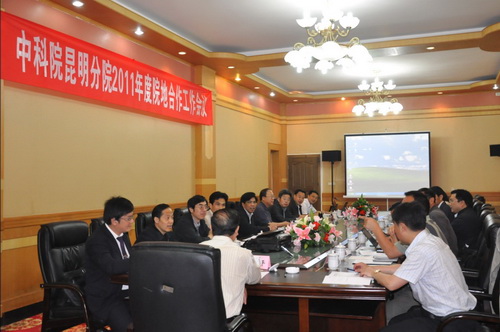会上,王庆礼院长代表昆明分院院地合作委员会作了工作报告,传达了白春礼院长关于“西南资源与生物多样性可持续利用创新集群”建设的相关意见,总结了2010年成效统计工作,并对2011年院地合作重点工作作了部署;成都分院参会人员介绍了“长江中上游生态环境保护及产业升级创新集群”的建设蓝图;昆明分院所属各单位分别汇报了2010年院地合作工作成效及2011年的工作计划;在任科技副职结合实际工作总结了就任以来的工作情况,并对如何充分发挥好桥梁纽带作用进行了交流。