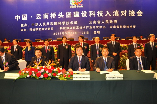 2012年9月27-28日,以“开放创新、合作共赢”为主题的“中国·云南桥头堡建设科技入滇对接会”在昆明国际会展中心隆重举行,中国科学院副院长张亚平院士应邀出席了开幕式和签约仪式。中科院11个分院、31个研究所、135个技术项目参加了本次对接会。