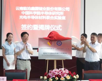 7月7日下午,中国科学院半导体研究所与云南临沧鑫圆锗业股份有限公司在云南国家锗材料基地签署了“光电半导体材料联合实验室合作协议”,中科院院士、半导体所所长李树深,云南锗业董事长包文东为联合实验室揭牌。