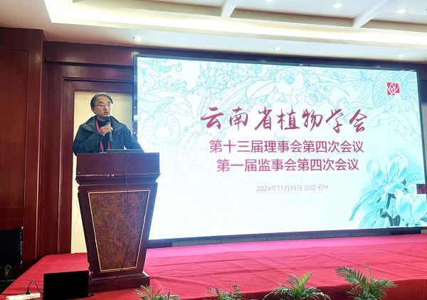 11月15日,云南省植物学会第十三届理事会第四次会议、第一届监事会第四次会议在石林召开。会议由理事长孙航院士主持,副理事长普诺·白玛丹增研究员、桂明英研究员、余迪求教授、监事长周浙昆研究员、学会理事、专业(工作)委员会主任以及学会办公室工作人员参加了会议。学会支撑单位中国科学院昆明植物研究所所长普诺·白玛丹增致欢迎辞,学会秘书长朱卫东汇报了学会2024年的工作进展、财务收支情况及2025年工作要点。