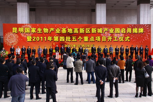 2011年10月28日,昆明国家生物产业基地高新区新城产业园正式揭牌启用, 中国科学院昆明分院院长王庆礼率昆明植物研究所、昆明动物研究所和西双版纳热带植物园有关领导应邀出席揭牌仪式,并与昆明国家高新技术产业开发区签订了合作协议。中共云南省委常委、昆明市委书记仇和、中国科学院院士周俊和国家发改委、昆明市委市政府、云南省发改委、科技厅、工信委、省医药行业协会和昆明市有关部门领导出席揭牌仪式。