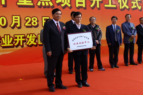 揭牌仪式上,总投资11.2亿元的5个生物产业重点项目宣布集体开工。
