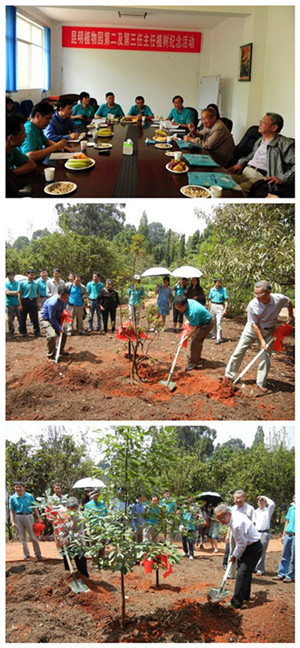 2012年7月24日是中国科学院昆明植物研究所建所及昆明植物园建园74周年的喜庆日子,为纪念这一特殊的日子,昆明植物园第二任主任(1975-1984)张敖罗研究员和第三任主任(1984-1995)罗方书研究员在名人名树区分别种下了有重要意义的纪念树:马缨花(Rhododendron delavayi)和滇润楠(Machilus yunnanensis)。此前,他们与植物园园林园艺中心的职工和部分研究生进行了座谈。植树仪式和座谈会由昆明植物园主任孙卫邦主持,昆明植物所所长李德铢(昆明植物园第五任主任)出席并做了重要讲话。