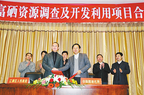 11月26日上午,江津区政府一楼会议厅响起了经久不息的掌声:江津区政府与中国科学院地球化学研究所正式签订《江津区富硒资源调查及开发利用对策》项目合作协议。这一项目的实施,将使该区富硒产业获得重要科技支撑。