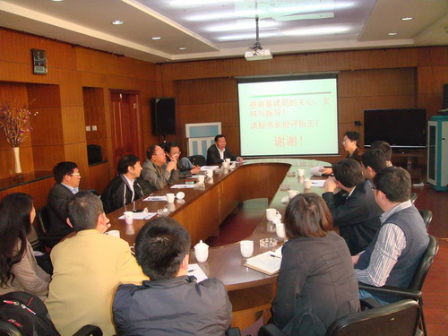 在昆明分院会议室,调研组一行认真听取了昆明动物所副所长黄京飞关于“西南生命科学与技术研究院”工作进度及“十二五”昆明动物所和版纳植物园基本建设工作情况的专题汇报。目前,新园区建设中,首期列入“十二五”基本建设规划的昆明动物所“西南生物多样性综合实验研究平台项目”已完成地质详勘报告、省级环评批复及选址意见书,并由国家发改委指定的可研编制单位打包上报进入评审程。同时通过招标已正在委托云南省设计院进行初步设计及概算编制。版纳植物园的实验大楼项目现正在筹备工作中。