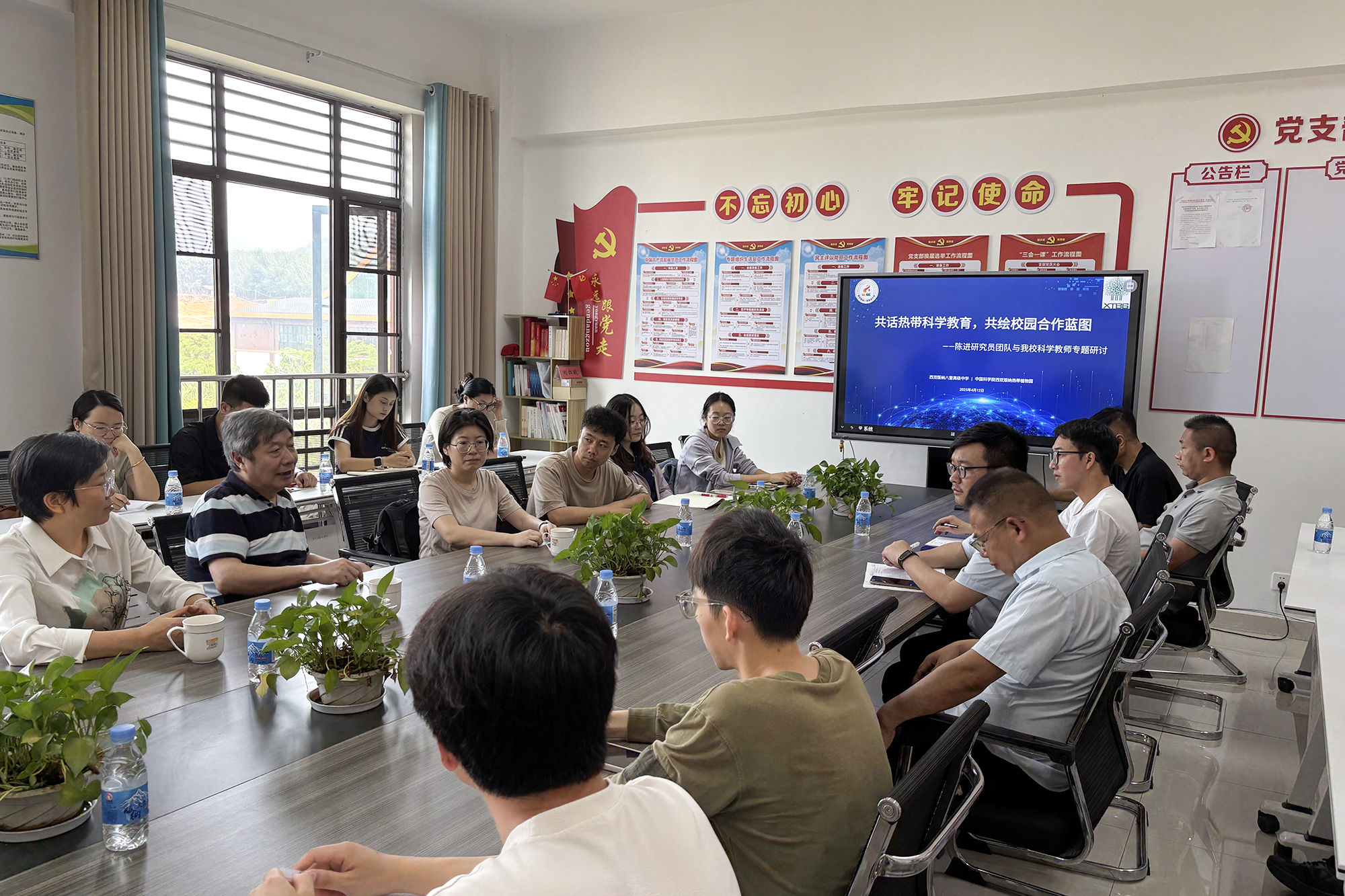 聘任仪式后,版纳植物园多位科学家为不同年级师生带来多场“成长中的望天树”系列科普讲座。环境教育中心首席科学家陈进研究员以《科学教育与自然教育的融合:关注学生独立自主性发展》为题,通过最新案例研究解析,强调培养青少年独立自主(Autonomy)能力的重要性;综合保护中心罗艳研究员通过《兰科植物多样性:生命演化奇迹与人类文明创造》讲座,以生动语言和丰富图例揭开兰科植物演化奇迹,阐释生物多样性保护的科学价值;新任科学副校长赵金丽博士则以《雨林深处古茶香》为切入点,从热带雨林生态到首个茶主题世界文化遗产,系统比较自然与人工茶园生态系统的差异,启发学生探索人与自然和谐共生的路径。期间,陈进研究员等还与在校的科技教师开展专题研讨、参观学校社团活动;园林艺术中心主任吴福川与校方就“校园绿美行动”展开深入交流,计划通过建设校内植物园、引入珍稀濒危植物保护项目等举措,将生态理念融入校园环境。