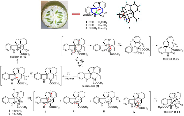 图1. Meloyunnanines A?C的结构以及可能的生源途径