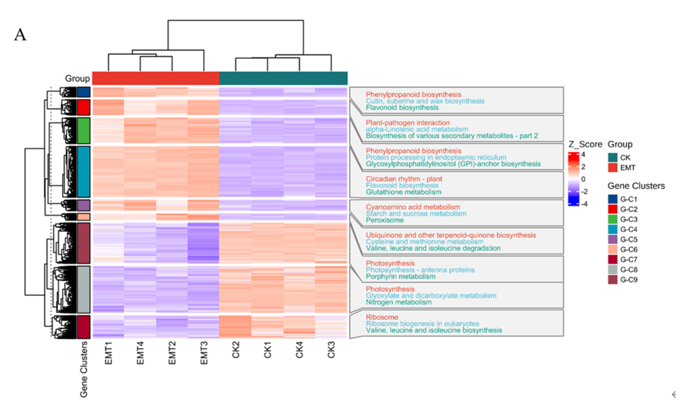 图2 EM菌丝侵染拟南芥后叶片基因表达变化