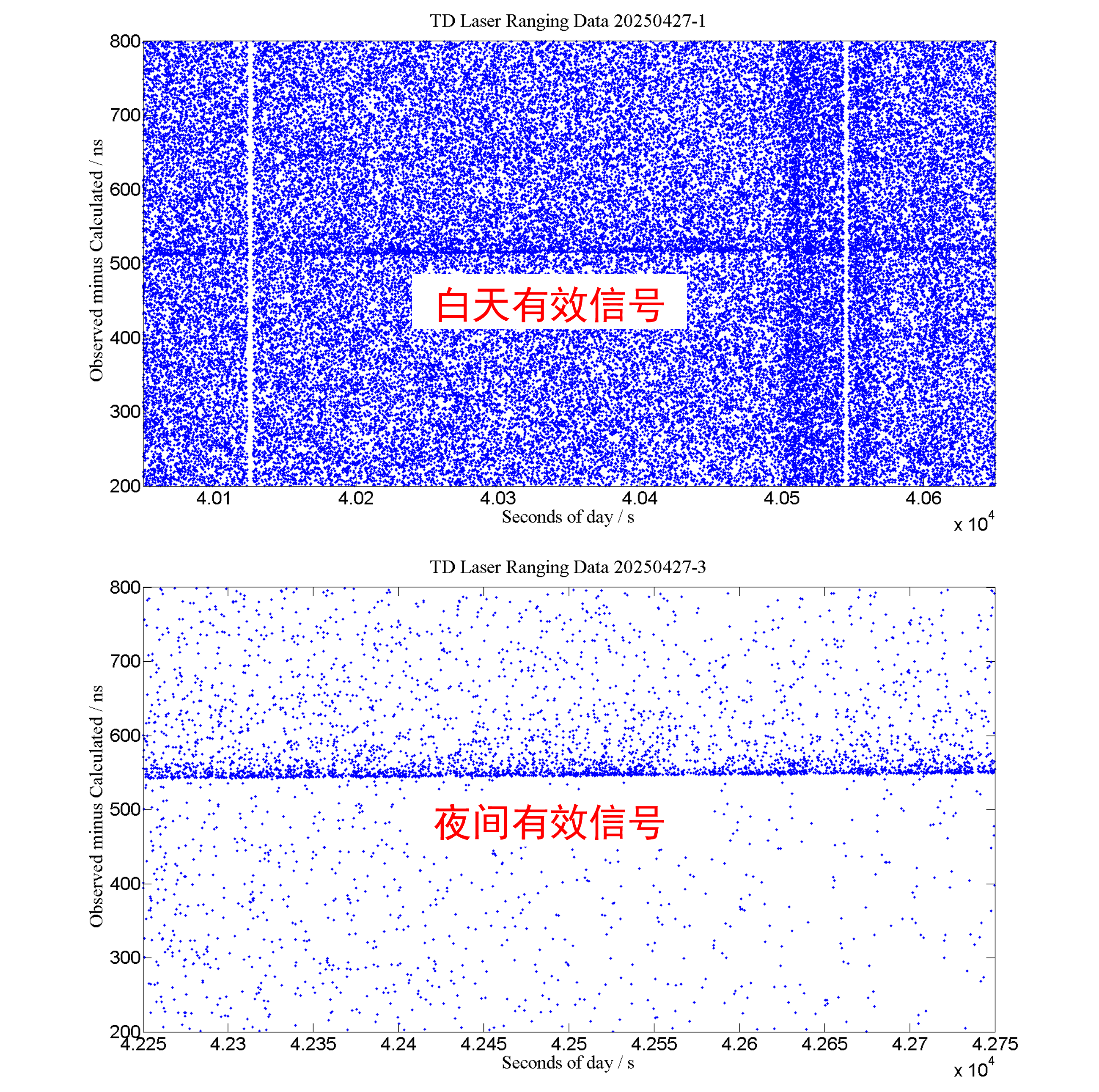 天都一号卫星白天与夜间有效回波信号对比