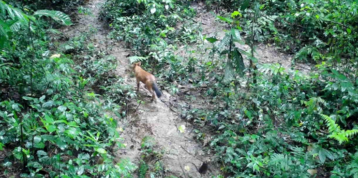 7月20日,中国科学院西双版纳热带植物园生态站工作人员邓云博士利用红外相机在版纳植物园东区拍摄到了豺狗的野外生态照片,证明了豺狗在版纳植物园的存在。